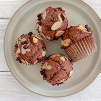ラム酒の香りが大人な雰囲気を演出する濃厚チョコマフィンです。焼きたてはふわっふわ、翌日はしっとりと異なる食感が楽しめます。生地に刻んだ板チョコやチョコチップを加えたり、トッピングにアーモンドスライスを散らすとさらに美味しさアップ。サクサクの食感とナッツの香ばしさが見事にマッチします。甘さ控えめで上品な味わいは、コーヒーのお供にぴったりです。