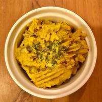 - 4 中火で熱したフライパンに有塩バターをひき、1をしんなりするまで炒めたら、牛乳、(A)を加えかぼちゃをつぶしながら弱火で加熱します。