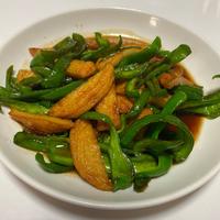 ピーマンとかまぼこのきんぴらです。ピーマンのシャキシャキとした食感とかまぼこの旨味が、甘辛い味つけによく合います。かまぼこをちくわやさつま揚げに代えてもおいしいですよ。お弁当の一品としても便利なので、ぜひお試しくださいね。