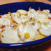 ジャガイモは薄く切ってチーズたっぷり入れました!ケチャップと相性が良くて美味しかったです。