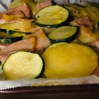 ジャガイモは水にさらして少しレンジで蒸してから焼きました。程よくシャキシャキした食感も残ってズッキーニと相性がよかったです。また作ります。