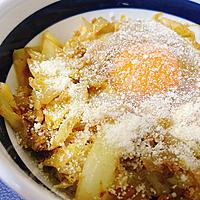 丼で。生卵と粉チーズかけて食べました😊ピザチーズでもよさげ。