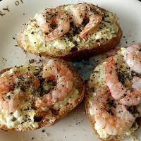 フランスパンで作ってみました〜タルタルとエビの相性最高‼︎