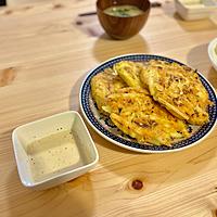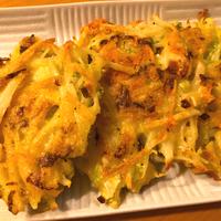 糖質を減らしたかったので小麦粉と片栗粉は無しで。つなぎとして卵は2個にしましたが、じゃが芋のでんぷん質でも多少は固まるので、1個でも充分かな…。じゃが芋のガレットよりヘルシー♪ソースはありでもなしでも美味しかったです。