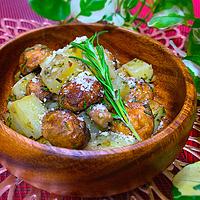アンチョビとバターの旨味が溶け込んだマッシュルームとホクホクのじゃがいもが絶妙な一品です。刻んだローズマリーを一緒に炒めると爽やかな香りが食材に移り、より本格的な味わいに。エリンギや生椎茸での代用も美味しく、粉チーズを加えると濃厚な味わいに仕上がります。シンプルな材料で手軽に作れるのに、おしゃれな一皿として食卓を彩ってくれます。