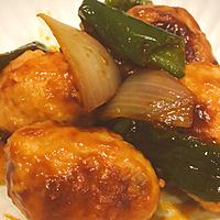 レンコン 入りの冷凍肉団子を使いたかったので参考にしました。冷蔵庫にあったピーマン と玉ねぎも足して。