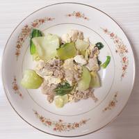 - 5 チンゲン菜がしんなりしてきたら、3を入れて中火で炒め合わせます。