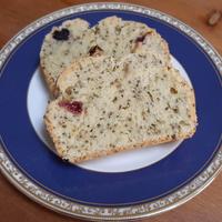 ポピーシードを使いました。一晩ふやかす作業をすっ飛ばしてしまいました。砂糖を10g追加し、バターは80gに減らしました。ドライフルーツには小さじ1のラム酒をふりかけました。焼き時間はプラス10分。