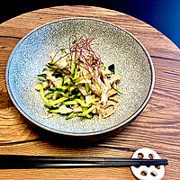 胡麻の香り豊かな風味とラー油のピリッとしたアクセントが絶妙な一品です。鶏むね肉を使用していますが、しっかりとした食べ応えがあり、ささみでも代用可能です。きゅうりのシャキシャキ感と相まって、さっぱりとした味わいに仕上がります。冷やして食べるとより美味しく、冷麺の具材としても相性抜群です。作り方も簡単で、味付けは胡麻ドレッシングと麺つゆで手軽に調理できます。