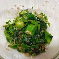- 4 ボウルに水気を切った3と麺つゆ、鰹節を入れ混ぜ合わせます。