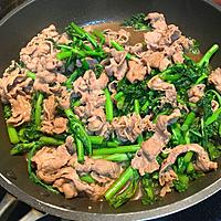 - 3 牛こま切れ肉に火が通ってきたら、1と調味料を入れ、火が通るまで中火で3分ほど炒め、火からおろします。