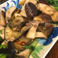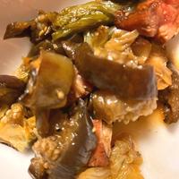 - 6 ニンニクの香りが立ったら中火にし、水気を切った1、2、4を加えナスに火が通るまで炒めます。