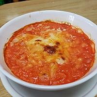 残っていたご飯で作りました。市販のトマトポタージュを使用してたのですがストックがなくハムも代用で作りました。トッピングもピザ用チーズで最後にトースターで焦げ目をつけました。美味しかったです。