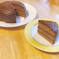 家にハンドミキサーがなく、泡立つか不安だったので、結局別立てで😓ガナッシュをかけてザッハトルテ風チョコレートケーキにしました〜💕