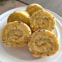 ロールケーキを大学芋風に、和風スイーツにアレンジしました。スポンジ生地には黒ごまを加え、中のクリームにはさつまいもペーストとちょっとのお醤油を加えて和の味わいに。見た目も面白く、ありそうでなかった不思議で美味しいロールケーキです。ぜひ作ってみてくださいね。