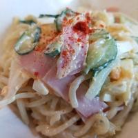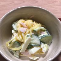 メモ:きゅうり、玉ねぎ多め(倍くらいの量。塩もみ必須)、卵1個。ヨーグルト、マヨネーズは大さじ1(ヨーグルトない場合マヨ大さじ2)粉チーズ小さじ2、味の素3振り、お酢小さじ1、乾燥バジル多め、ブラックペッパー多め、塩コショウ少々。。