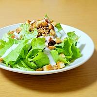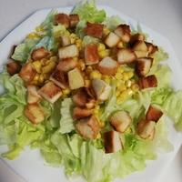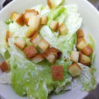 余ったパン耳100程でたっぷりクルトン完成、トースターで結構焼いて自分好みに。レタスとフライドオニオン、クルトンで美味しいシーザーサラダ。塩はなし✏️
