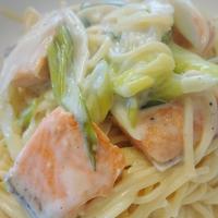 塩鮭4切れと長ネギ2本で4人前作りました。長ネギの甘味と鮭の塩気にまろやかなクリームソースが合って美味しかったです。