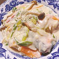 しめじも入れてみました!フライパンひとつで簡単に出来て満足です。あと余った具材などを足しても良さそう。クリーム煮でコンソメ味付けですが長ネギなので和風の食事にも合いました。