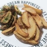 もう片方はガーリック無しで塩のみ。皮付きだとやっぱり美味しい❣️カリカリで好評でした!