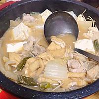 具材は鶏もも肉、長ネギ、えのき、白菜、油揚げ、木綿豆腐でした。