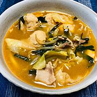 たまには味噌鍋かなと思って作ってみました。材料は豚こま、鶏団子、もやし、ニラ、キャベツ、しめじです。残っていたごぼうを忘れてしまいました。思ったより味噌味が効いておいしかったです。