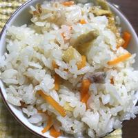 - 4 3が炊き上がったら、2の具材を炊飯釜に加え全体を混ぜます。