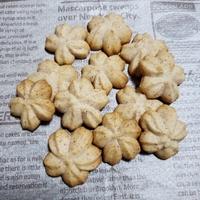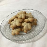 口金は押し込んで垂直にあげると、きれいに桜ができますね。裏側中央がなかなかしっかりと焼けず、+15分で焼けたものの、一部はアルミ箔をかけても焼きすぎてしまいました。さっくりとした優しい甘さのクッキーでした。