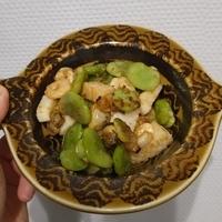 エビと一緒にエリンギを炒めて、しんなりしてからそら豆をいれることでそら豆が焼かれすぎずに美味しく食べることができました◎