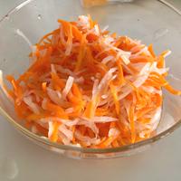 - 1 大根とにんじんを5mmの長さの千切りにします。