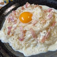 素麺が余っていたので作りました。本当に簡単なのに、ちゃんとカルボナーラ!すごくおいしかったです◎