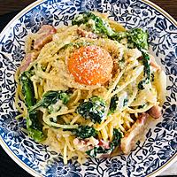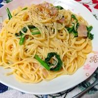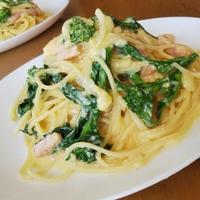 生クリーム使ってないのに濃厚で、菜の花の苦味とベーコンの塩気が合います❣️