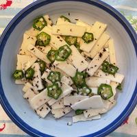 - 1 長芋は皮をむいて10分酢水につけます。 オクラは塩をまぶして茹で、小口切りします。