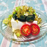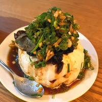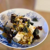 たっぷりの香味野菜などの薬味をのせて食べる、中国風冷ややっこ、ピータン豆腐の紹介です。豆腐を丸ごと皿に盛り、取り分けるスタイルにすると、おもてなしなどお洒落な前菜になりますよ。豆腐のさっぱり感とピータンのコクがぴったりの味わいです。