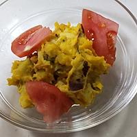 さつまいもとかぼちゃのサラダです。さつまいもとかぼちゃの甘みと、さっぱりとしたカッテージチーズがよく合います。電子レンジで加熱するので短時間で簡単にできますよ。あともう一品欲しいときに、作ってみてくださいね。