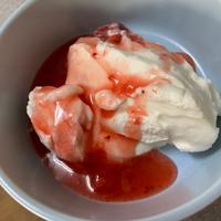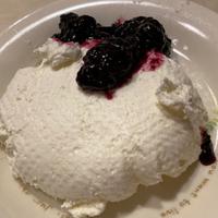 水切りヨーグルトがさっぱりおいしいデザートになりました。ソースも簡単でさわやかな味です。