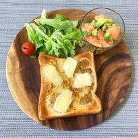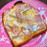 カマンベールチーズとスライスチーズのダブル使いで、とろけるチーズの食感が絶妙です。お砂糖とはちみつの甘さに、ブラックペッパーのピリッとした刺激が効いた甘じょっぱい味わいが癖になります。モッツァレラやチェダーチーズなど、お好みのチーズでアレンジも楽しめます。休日の朝食やちょっとリッチな気分を味わいたい時にぴったりの、手軽で贅沢なトーストです。
