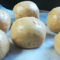 - 3 別のボウルに薄力粉、黒蜜、2を入れゴムベラで均一にまとまるまで混ぜ合わせます。サラダ油を入れてよくこねたら、6等分にします。