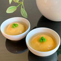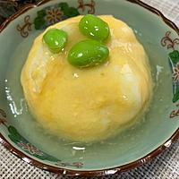 レンジでチンする時、丁度良い器がなかったため、終わってからサランラップでできた卵を包み直し、更に上から薄手のタオルで押さえ、コロンとした丸い形になるよう、しばらく手で押さえました。上にかけた、白だしのあんが上品な味付けで美味しかったです😊彩りも綺麗だし、また作りたいです!