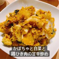 かぼちゃと白菜と鶏ひき肉の甘辛炒め レシピ・作り方