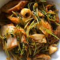 豆苗の代わりに小松菜で。キムチが効いてて美味しかった!