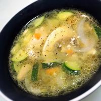 生姜の香りと塩麹の風味が食欲をそそり、野菜から出た甘みもしっかり味わえる美味しいスープでした。ささみで作りました。
