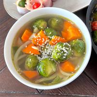 コロコロと見た目も可愛く色鮮やかな芽キャベツをあったかいポトフにしたレシピです。甘みのある芽キャベツはコンソメの味付けと他の具材からでた旨味たっぷりのスープによく合います。寒い日は体がぽかぽかになるのでぜひ作ってみてはいかがでしょうか。