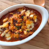 - 6 耐熱容器に4、5、ピザ用チーズをのせ、オーブントースターで10分程、ピザ用チーズが溶けるまで加熱します。