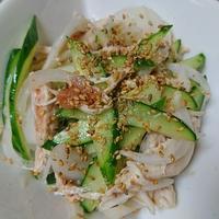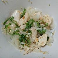 ササミはサラダチキンで代用。梅肉は梅干しを叩いて作りました。