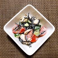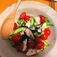 鶏ささみとひじきでサラダにしてみました。鶏ささみとひじきの旨味が、胡麻マヨネーズとよく合います。ミニトマトときゅうりが入る事により、色合いと歯応えが良くなります。お酒にもよく合いますので、是非お試しくださいね。