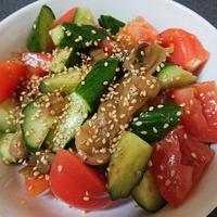 きゅうりは軽く塩もみ、トマトは中玉使用。