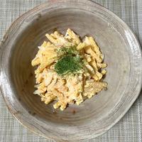 - 4 別のボウルに(A)を入れてよく混ぜ合わせ、水気を切った2、3、たらこを加えて全体に味がなじむように和えます。