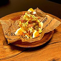 - 4 ゆで卵はフォークで潰します。