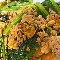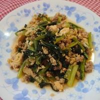 小松菜、豚ミンチ、卵があればできる。簡単。